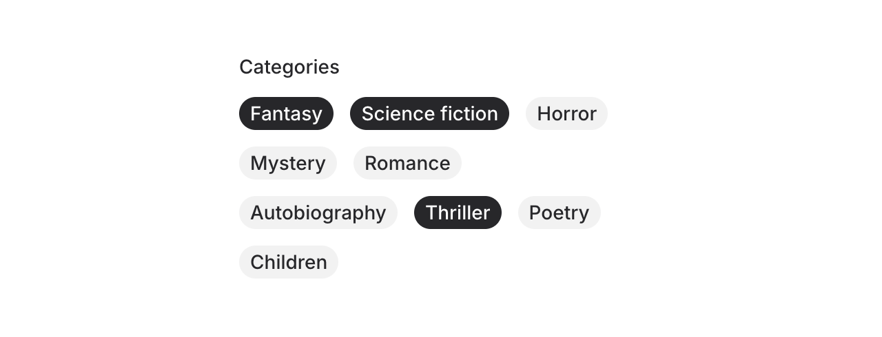 这两个变体可用于单选组与复选组,提供更紧凑的选择方式,非常适合用于筛选器、工具栏以及任何需要更简洁外观的场景。